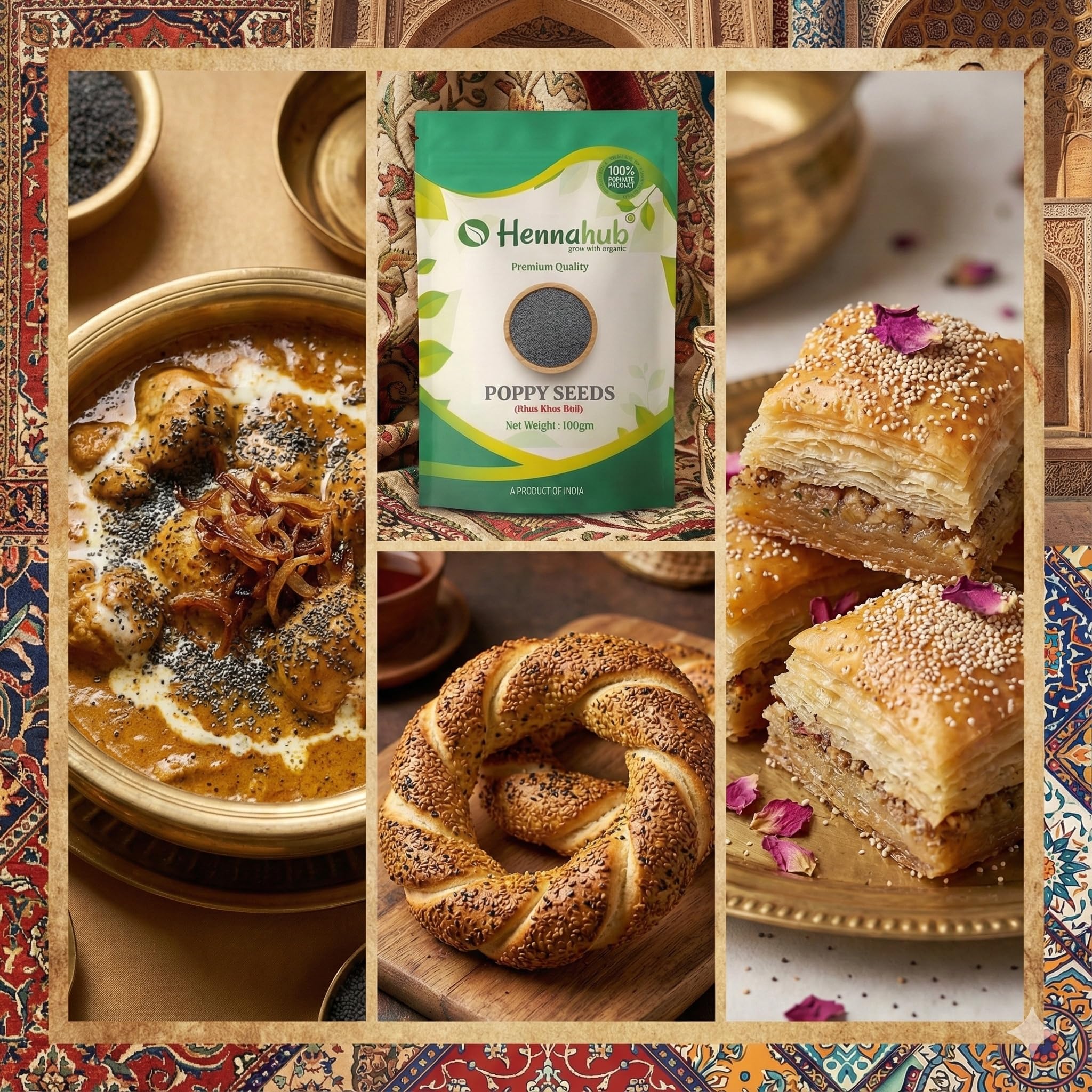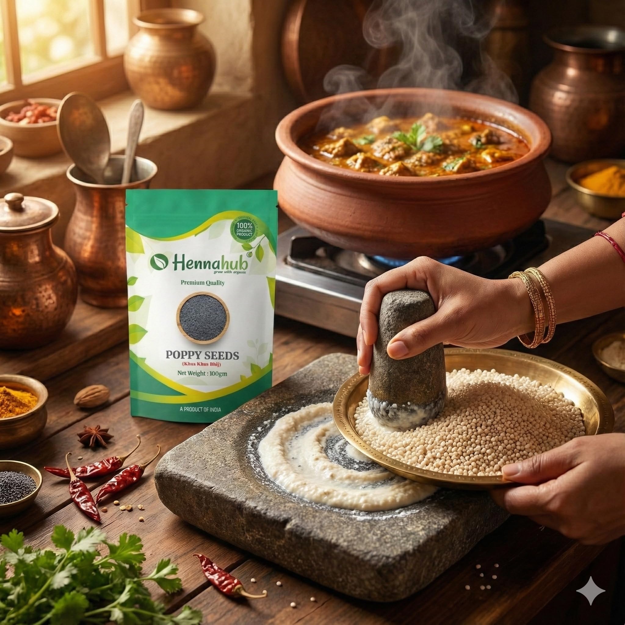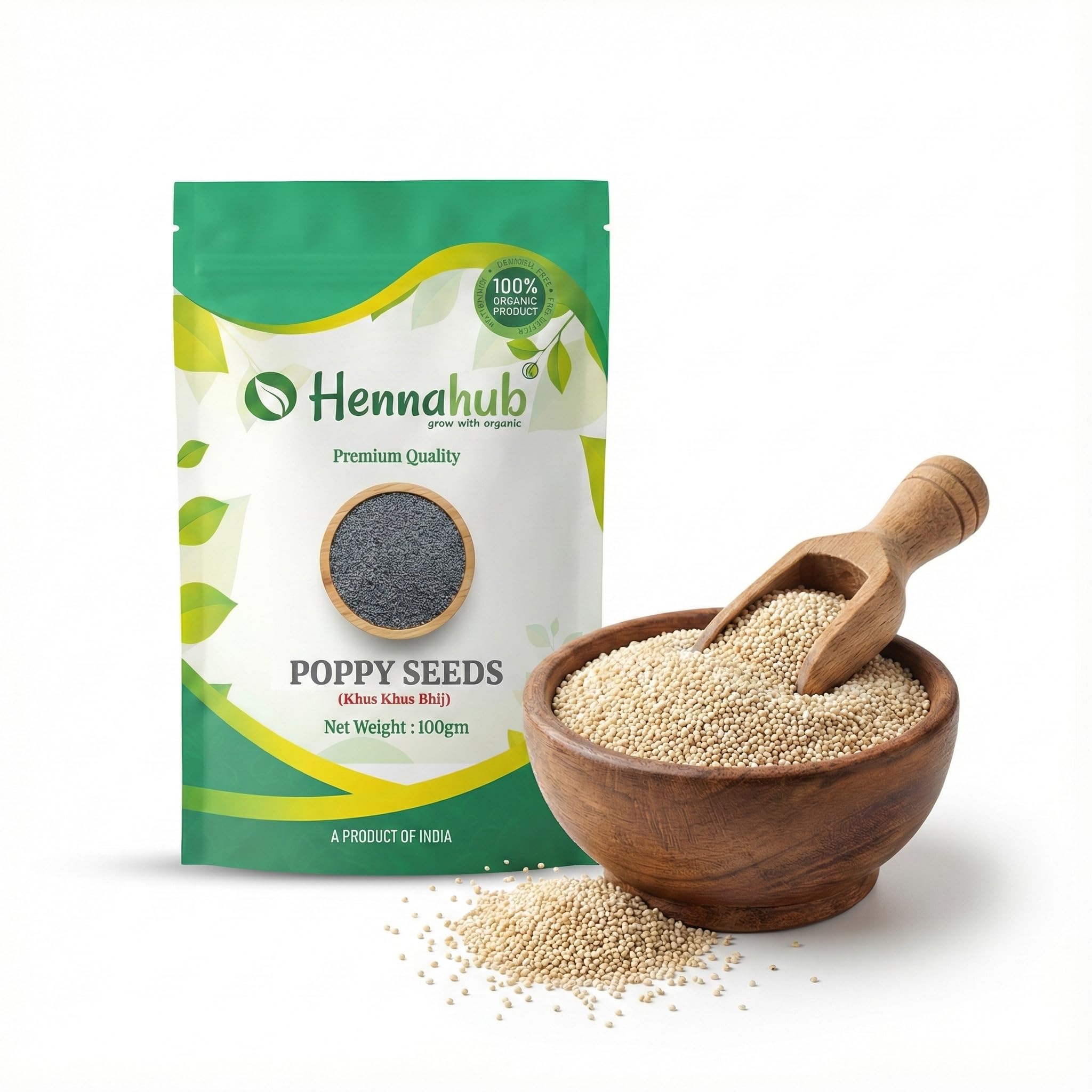 Hennahub Poppy Seeds (Khus Khus) - 100gm are premium-quality white poppy seeds commonly known as Khus Khus, Posta Dana, Khas Khas, Khaskhas, Gasagase, and Poppy Grain . These seeds are valued for their mild nutty taste, aroma, and ability to thicken gravies and enhance desserts.